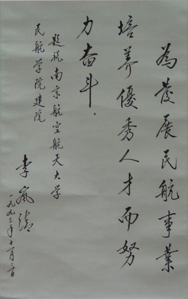 院题词:“为发展民航事业培养优秀人才而努力奋。”